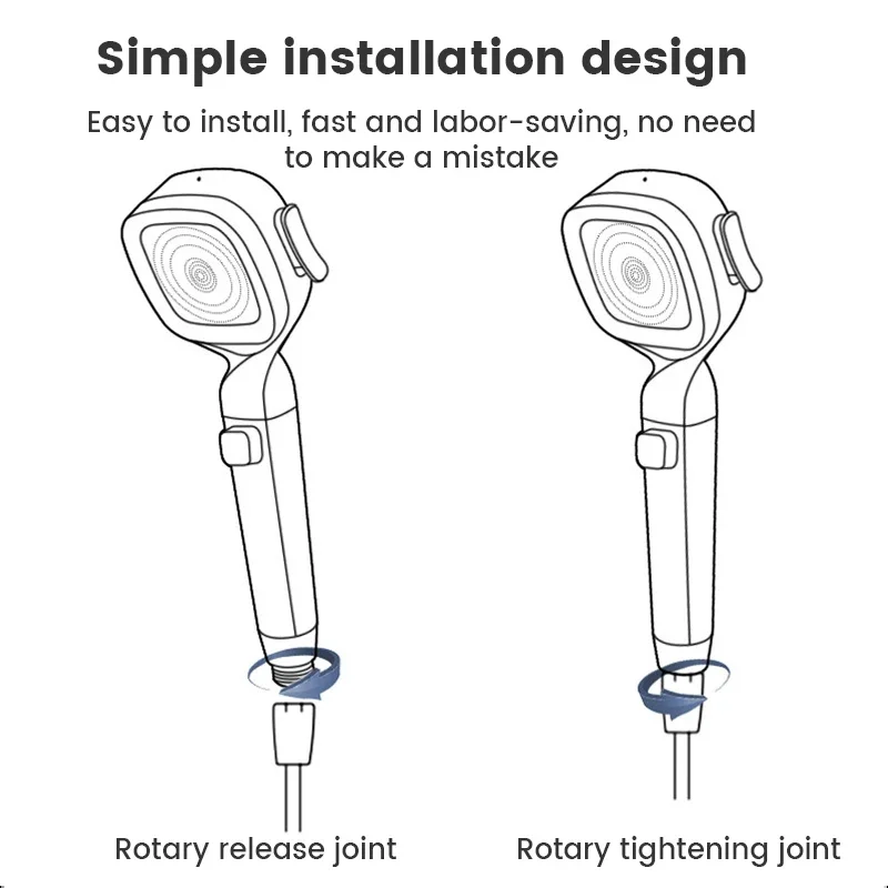 Facile à installer : Il peut être connecté en quelques minutes sans outils. Toutes les connexions peuvent être serrées manuellement, avec une interface universelle internationale à quatre points et 2 cm. Vous pouvez l’utiliser comme douche ou douchette à main pour n’importe quel tuyau standard.