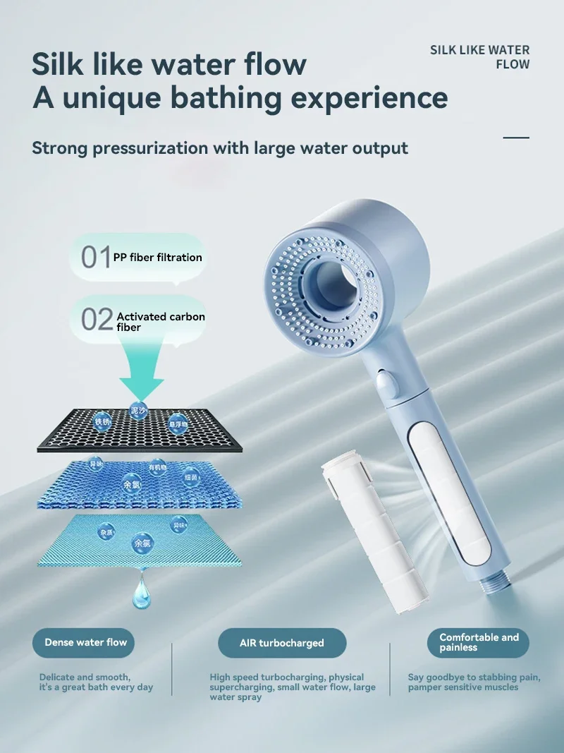 Économie d’eau: la douche adopte la technologie de micro-aspersion, la sortie d’eau est plus petite et plus dense, la vitesse d’écoulement de l’eau est plus rapide, et en même temps, il permet d’économiser jusqu’à 30% d’eau que les douches ordinaires.