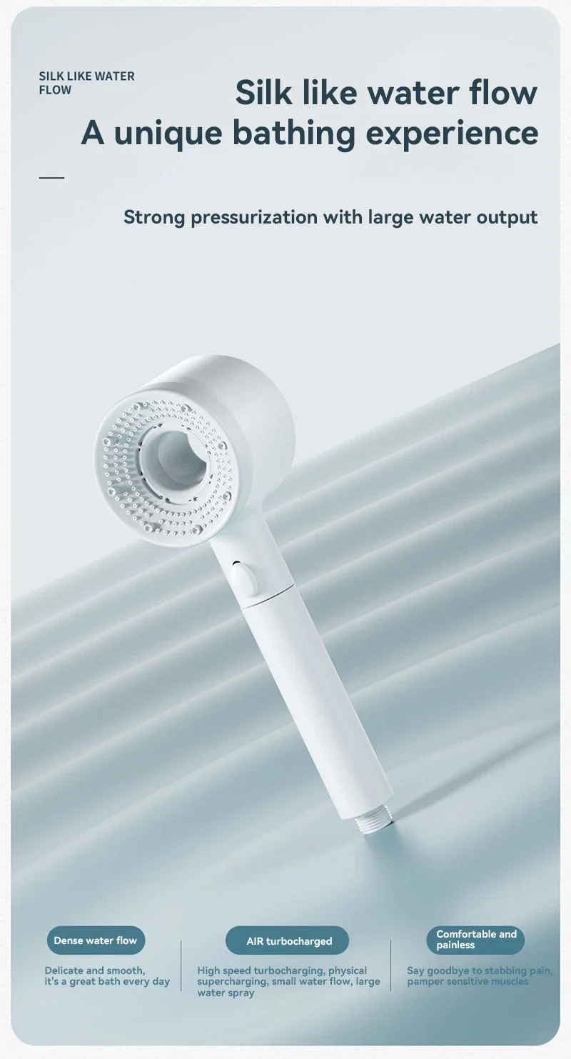 Conception unique: douche pressurisée puissante, 5 modes, arrêt de l’eau à un bouton, facile à utiliser.