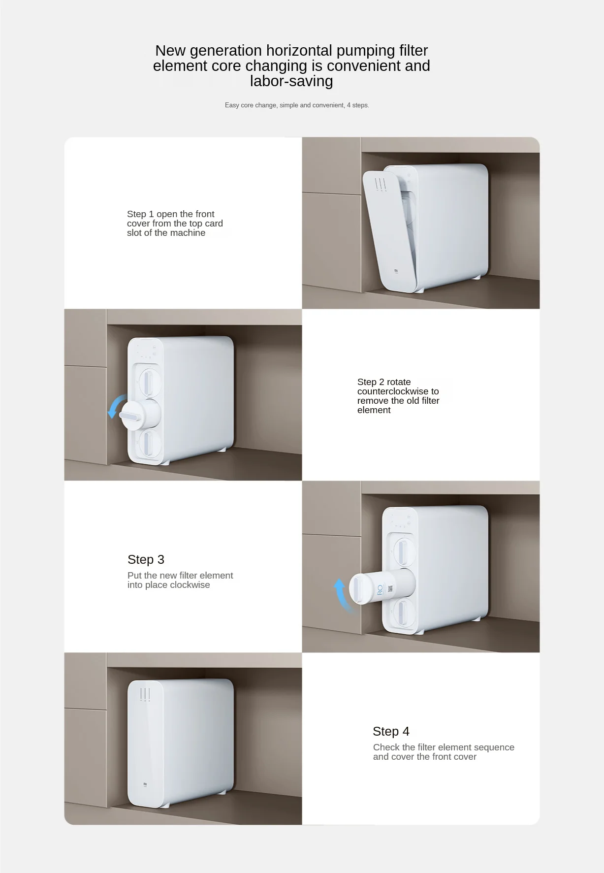 4. Une fois que l’élément filtrant est exposé à l’eau, veuillez l’utiliser dès que possible. Il ne convient pas au stockage à long terme. Veuillez l’utiliser et le remplacer selon les instructions.