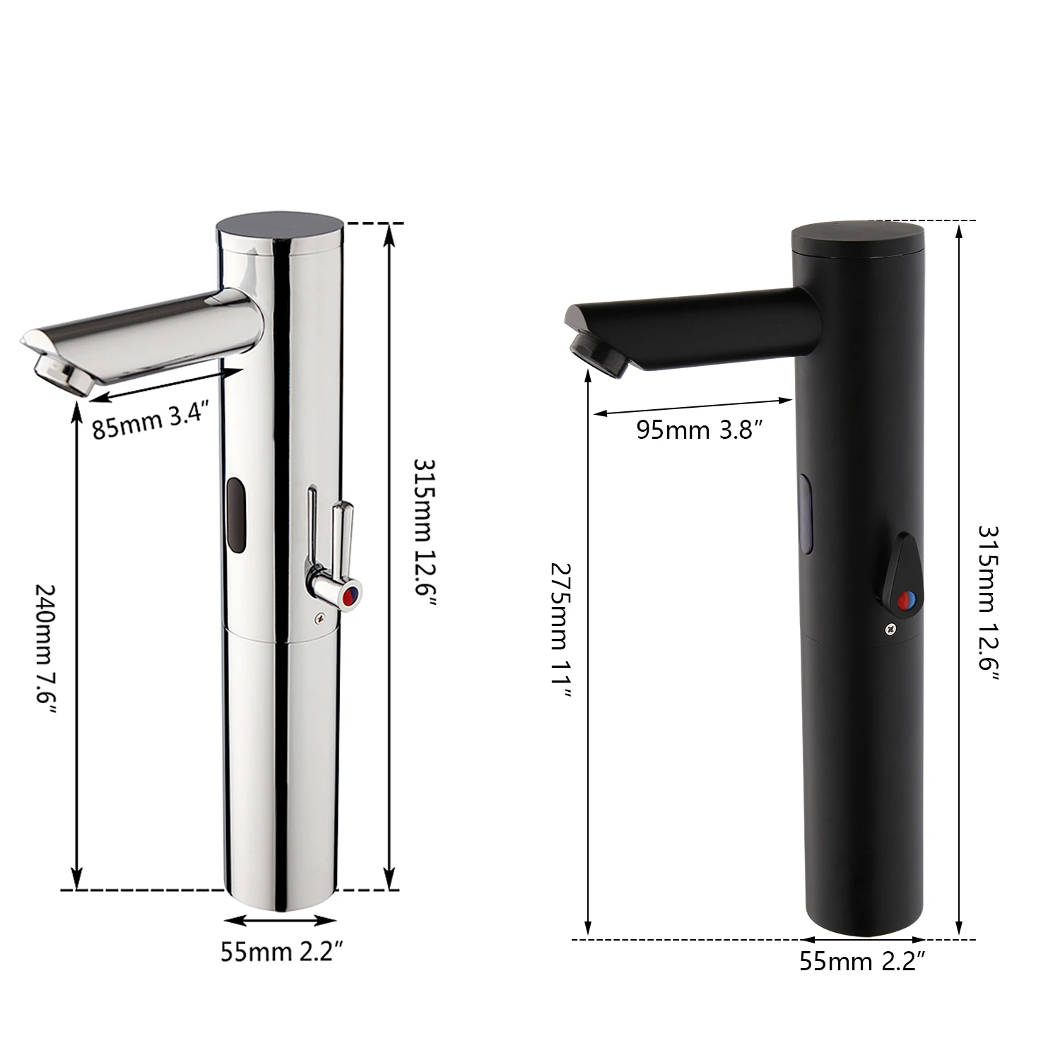 Robinet automatique avec capteur infrarouge, distance de détection 10-18 cm.Placez votre main devant la zone de détection, l’eau sortira automatiquement.Retirez votre main, l’eau s’arrêtera.Il s’agit d’un robinet sanitaire et économe en eau.