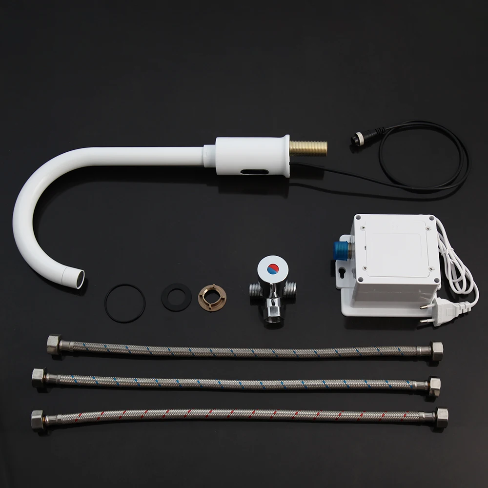 ZAPPO robinet de lavabo à capteur intelligent mélangeur d’eau chaude et froide monté sur le pont mains automatiques robinet à capteur sans contact blanc/orZAPPO robinet de lavabo à capteur intelligent mélangeur d’eau chaude et froide monté sur le pont mains automatiques robinet à capteur sans contact blanc/or
