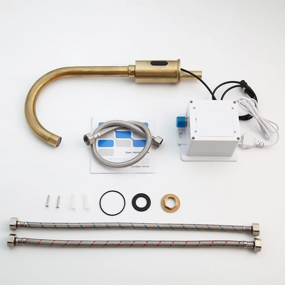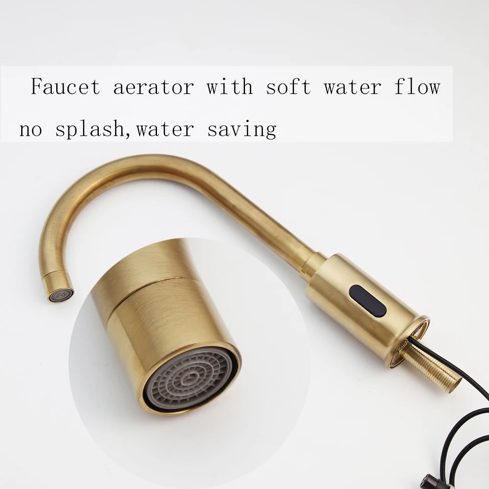 ZAPPO robinet de lavabo à capteur intelligent mélangeur d’eau chaude et froide monté sur le pont mains automatiques robinet à capteur sans contact blanc/or
