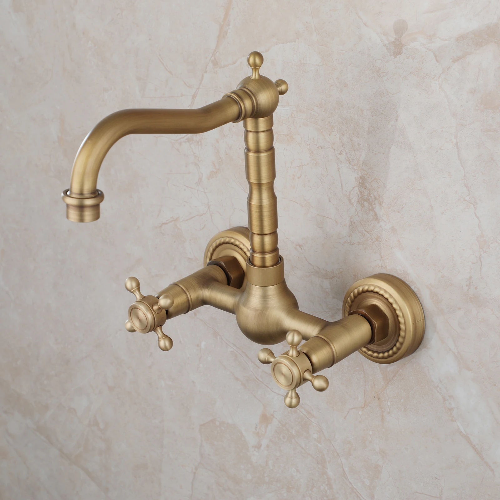 ZAPPO robinet de lavabo de salle de bains en laiton, robinets muraux à double poignée avec bec pivotant 360, robinet de baignoire mitigeur en laiton Antique