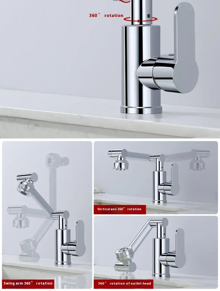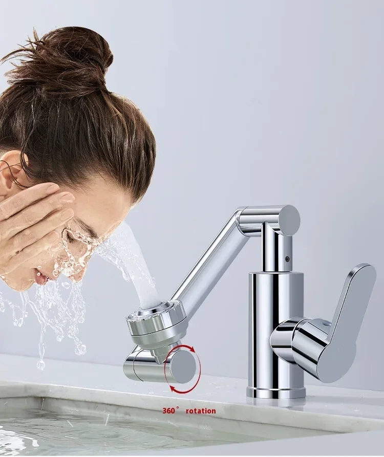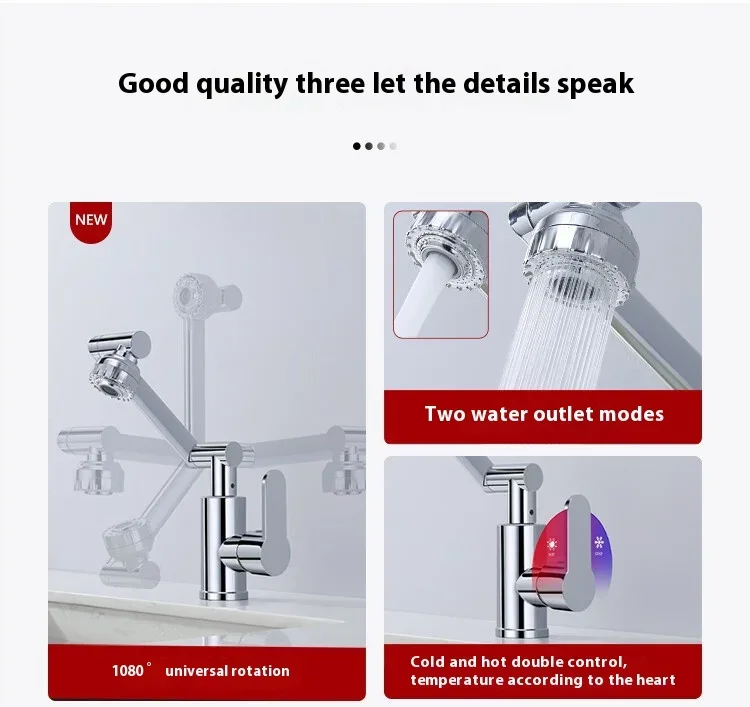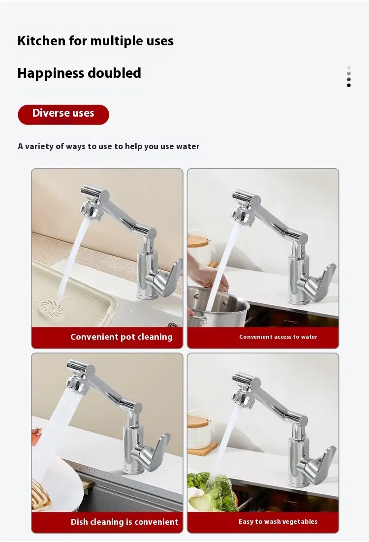 Titre : Lucky Cat Design Acier inoxydable 360 ° Robinet rotatif pour évier de cuisine et de salle de bain, mitigeur multifonction chaud/froid