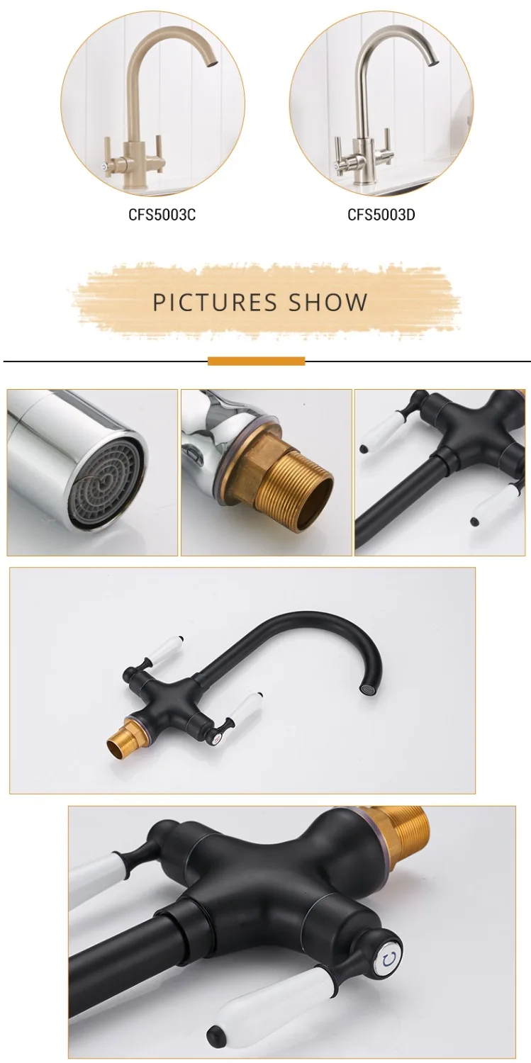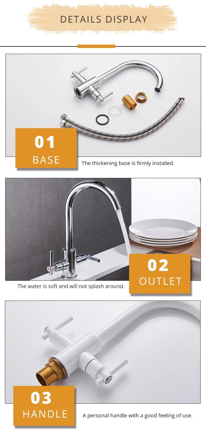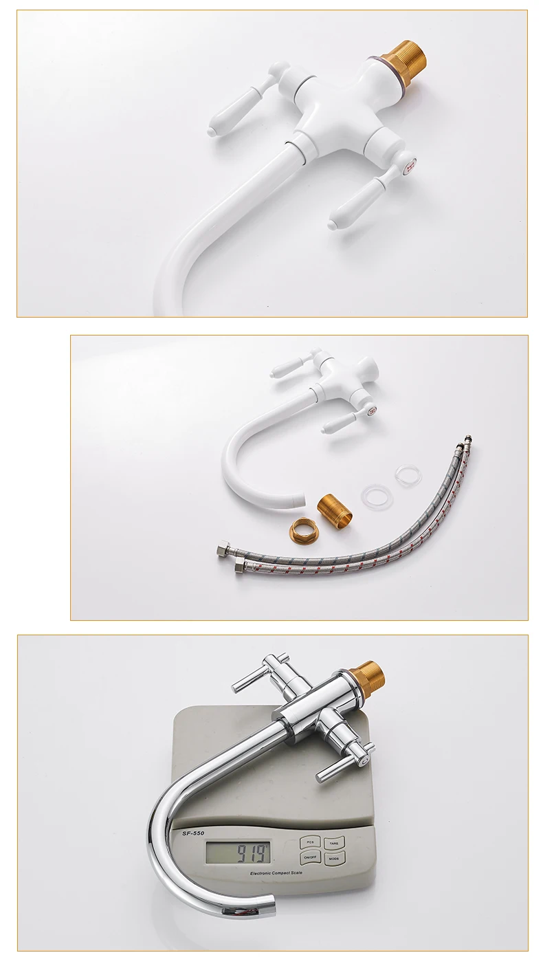 Nom: ZGRK Robinets de cuisine noir mat à double poignée Robinet de cuisine monotrou 360 Rotation Mitigeur d’eau Chrome Blanc Robinet d’évier