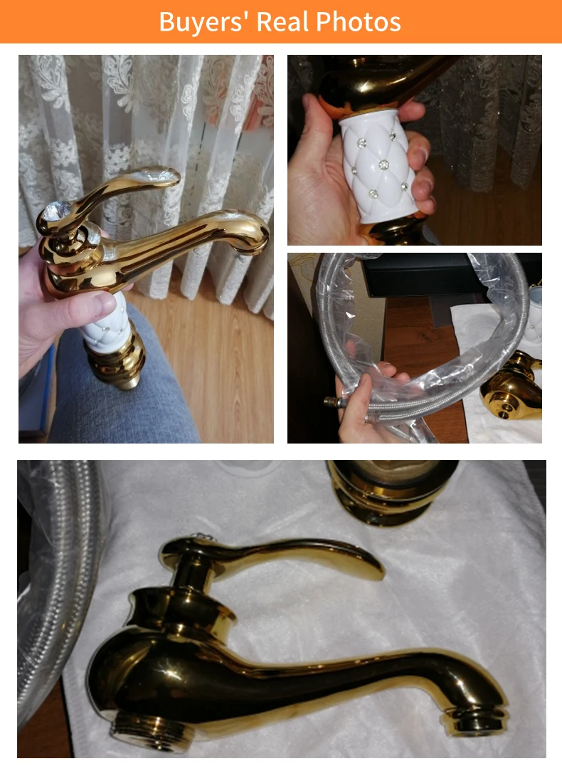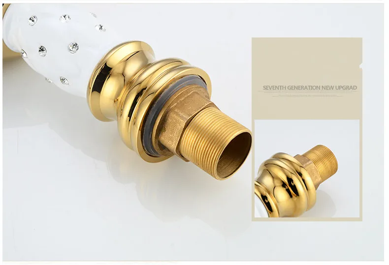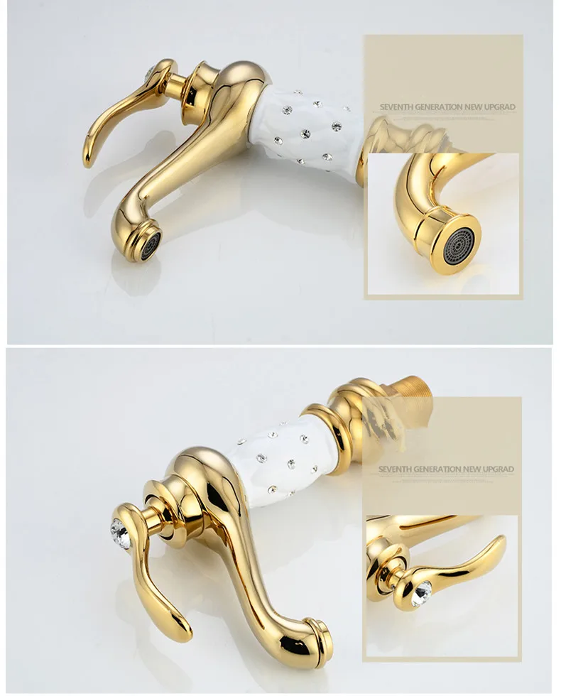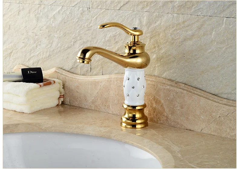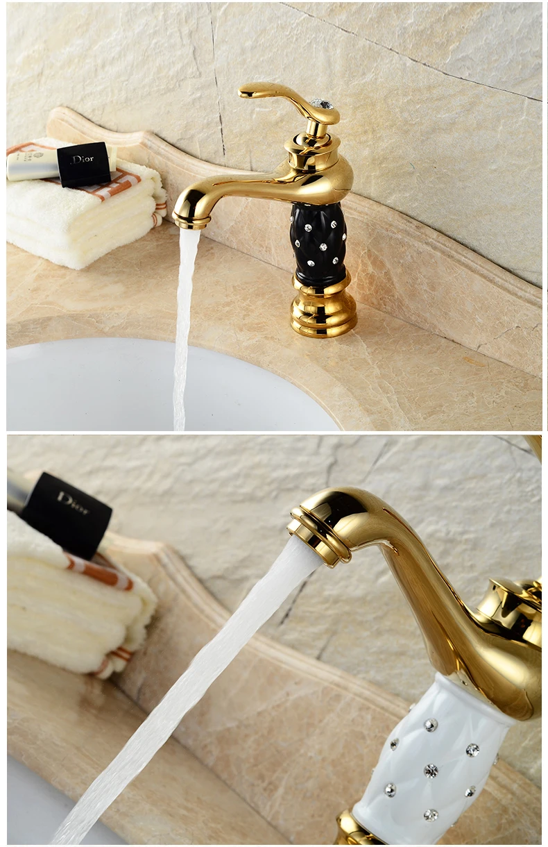Nom: Robinets de lavabo ZGRK Robinet de lavabo de salle de bain doré Design créatif Robinets mélangeurs monotrou pour eau chaude et froide montés sur pont en cristal