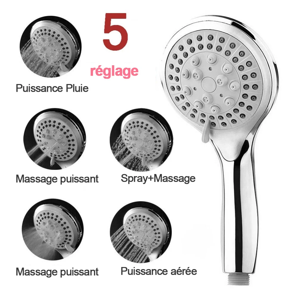 Set1 = 1 * pomme de douche + 1 * tuyau (1.5 m) set2 = 1 * pomme de douche + 1 * tuyau (1.5 m)+ 1 * ensemble de support ABS 3 = 1 * pomme de douche + 1 * tuyau (1.5 m)+ 1 * ensemble de support en aluminium 4 = 1 * pomme de douche + 1 * filtre de douche (15 étapes)